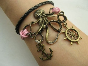 Accessories in a marine style can be called universal. They look great with both everyday and evening dresses. Bracelets with an anchor are absolutely capricious, and they can be combined with other jewelry made of various materials.