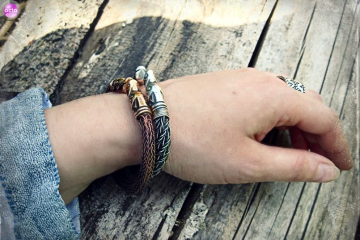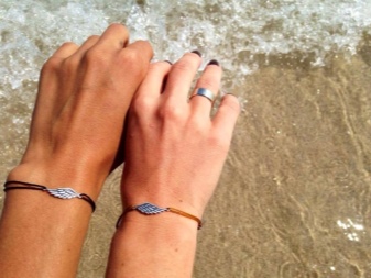 Combined bracelets use not only precious stones and minerals, but also other materials. Today you can find products with rubber inserts and enamel. Often you can find a rope, leather and silver version. Different processing methods make it possible to obtain blackened, gilded or mixed with other shades - pink, white at the output.