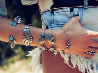 Different types of bracelets will be appropriate in one or another style. Bright and massive will suit ethnic sundresses, long skirts, boho blouses, t-shirts. Thin and neat models, on the contrary, will look good with strict shirts, feminine tops, elegant dresses.