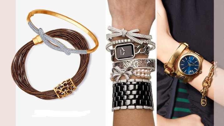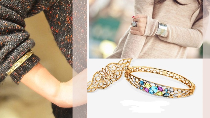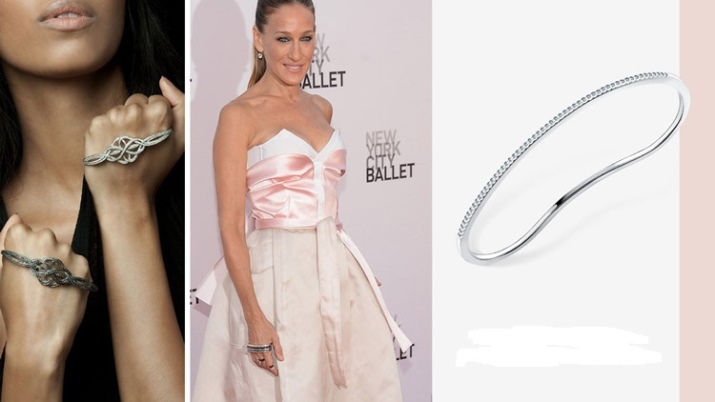 Similar products are made from various alloys of metals. Modern fashionistas are faced with a chic selection of attractive models, complemented by precious and semi-precious stones placed around the perimeter of the bracelet.