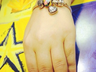 Each girl uses her bracelets in her own way. Someone like to wear only one or two charm on a bracelet, some string the maximum number of elements. It all depends entirely on your taste and convenience. When filling out the bracelet, it is worth considering that its diameter with charms will slightly decrease, therefore it is believed that the distance between the wrist and the base of the bracelet should be equal to the thickness of two fingers.