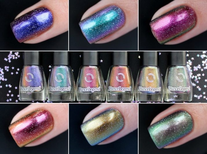 Varnishes of this collection are designed specifically for girls who want to constantly change in appearance. Dance Legend Chameleon changes its hue depending on the ambient temperature and lighting: from lighter to dark saturated colors.