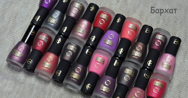 The collection contains a palette of 21 varnish in classic shades. The coating is matte, velvet.