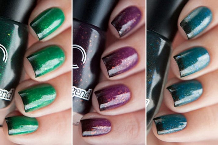 This collection consists of only three varnishes. They are applied in the usual way. After drying, the coating looks unattractive, so you need to apply a top coat or fixative on top. The result is incredible - the shimmer and mica as part of MortalKombat begin to play with all possible colors, shimmer and sparkle.