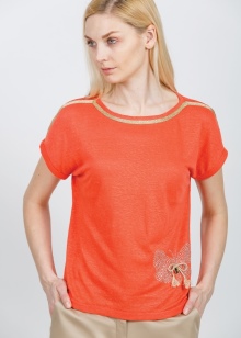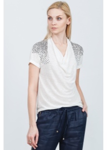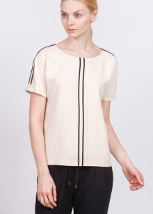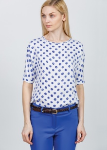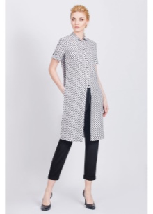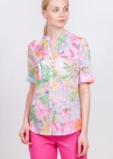 The company presents three quarter quarters with short sleeves and sleeves. They are made of thin fabric in beige tones and will look great with classic trousers. In the new season, you can also see blouses with an unusual and bright ornament.