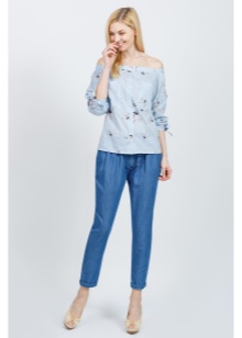 Pants with a length just above the ankle and with ties at the waist came into fashion. Of course, classic trousers of various colors always remain in trend.