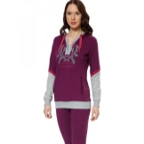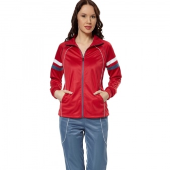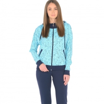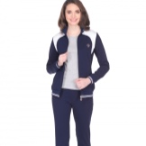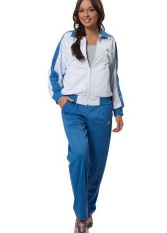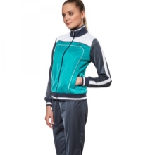 - High-quality tracksuits for lovely ladies are the most comfortable and pleasant to the body. They are made from delicate cotton, polyester and elastane. These materials provide elasticity to the fabric and make it soft. The top in suits (sweatshirt) may have a high or v-neck with a hood. Fashionable items are complemented by color pants and zippers.