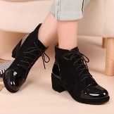 If the weather is cool outside, then classic models with a closed bootleg will be the ideal solution. They are equipped with color lacing, straps and a small wide flat heel.