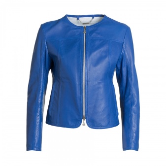 For courageous girls who strive to always be in the spotlight, a blue leather jacket is perfect. Minimalism and lack of decor allow you to combine it with clothes in a business style.