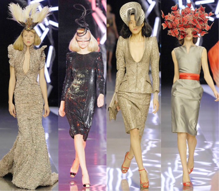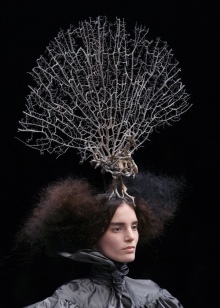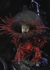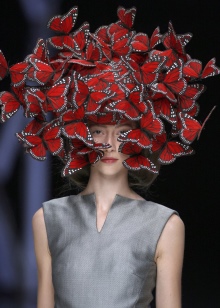 These were Asian-style clothes, dresses with stuffed birds, hats imitating fencing masks, and, of course, the famous headdresses from the flock of butterflies that Philip Tracy helped to create.