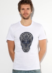 Not surprisingly, one of the characters that is associated with the work of the designer is skulls. For example, they can be found on T-shirts, as well as skeletons and images of feathers, which also played a large role in the work of Alexander.