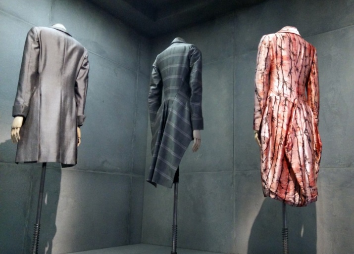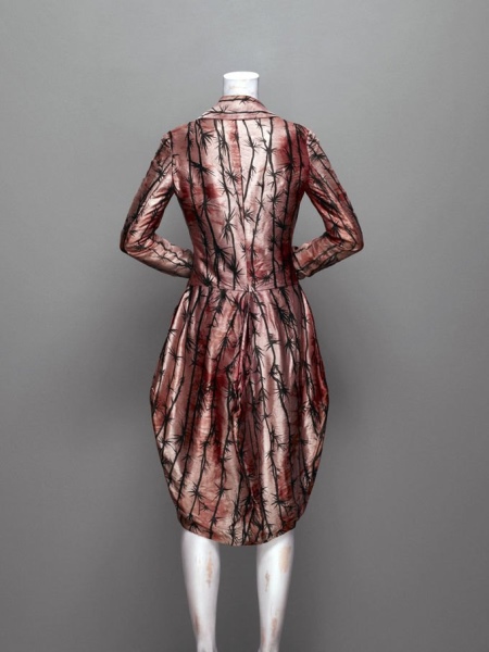 Among the exhibits - a dress of silk with a pattern of barbed wire, which is decorated with human hair. This is a reference to women of easy virtue during the Victorian era. They sold their hair, from which they later made wigs with curls.