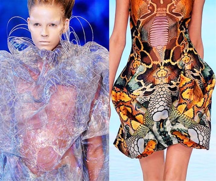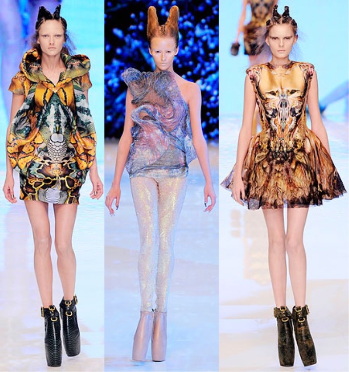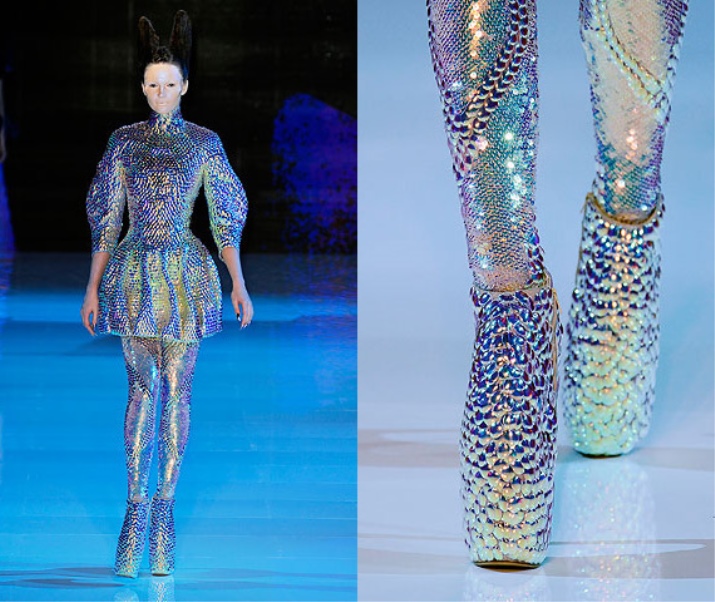 The designer was inspired by the problems of global warming and life after the apocalypse. The show became the embodiment of Alexander’s fantasies, in which reptilians who adapted to life on land and under water inhabit the planet.