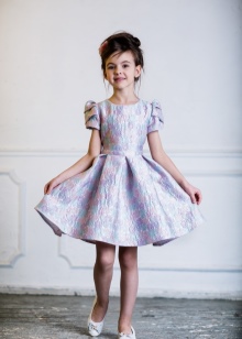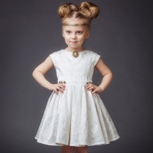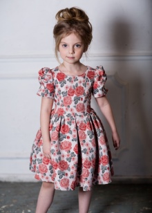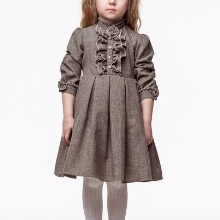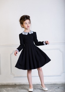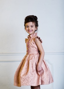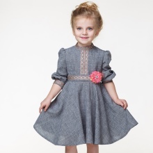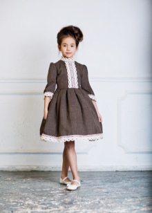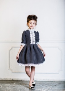Many parents are delighted to see their little daughter in Alisia Fiori dresses. The girl in Annette's dress will remind her mother the heroine of her favorite novel. This dress is made of light suit fabric with a long sleeve, a pleated skirt and a bow at the back at the waist. A collar-collar and cuffs are decorated with a thin lace. The model is black, gray and shade of melange. Laconic design, but elegant cut will not allow you to take your eyes off the pretty girl. The same effect from Margaret's dress model.