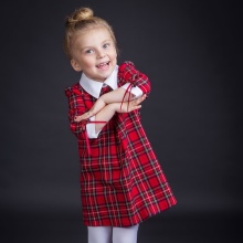 The characteristic elements of decor for Alisia Fiori clothes are lace, original bows, and exquisite decorative details. Designers are able to combine the brightness of children's clothing and rigor. It can be both monophonic outfits, and color. Alisia Fiori is characterized by prints in the form of floral motifs, peas, Scottish cage or “crow's feet”.