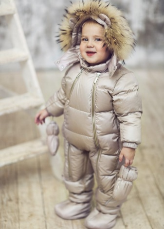 The Ollie model is universal in nature, as it is suitable for both boys and girls. The transformer jumpsuit is presented on a down insulation, and is also decorated with fur trim around the edge of the hood.