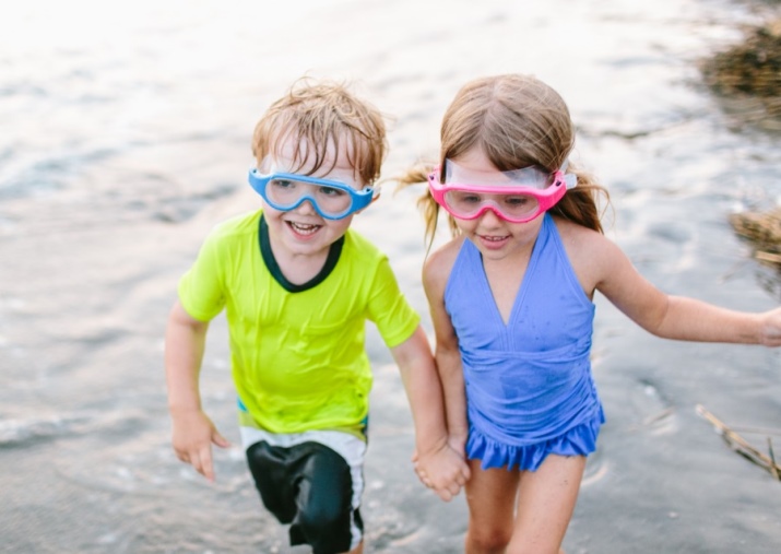 The glasses of the diver do not let water in, protecting the baby's eyes. They are made in one size and are intended for children from three to six years. Each model has a flexible frame that protects against water ingress.