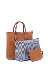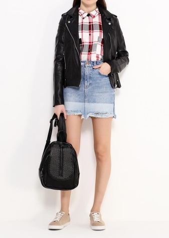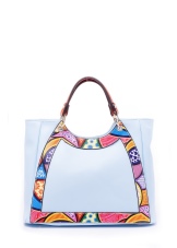 - Large bags - made of artificial leather with the addition of fabrics, raincoat fabric. Decorated with a variety of patterns, accessories, embroidery. In addition to the bag, a wallet with a similar design and made of the same materials is attached.