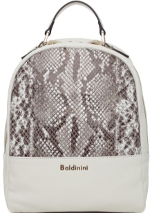 Stylish backpacks, which are released by Baldinini, are also rapidly gaining momentum this season. The main color palette is presented in white, beige and black tones. White backpacks trimmed with large beads and golden zippers look very gentle.