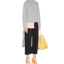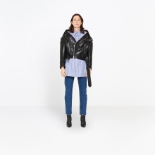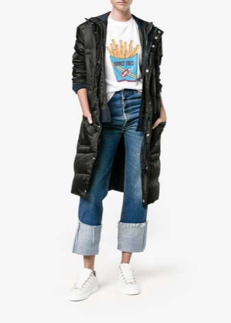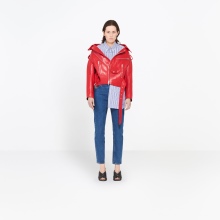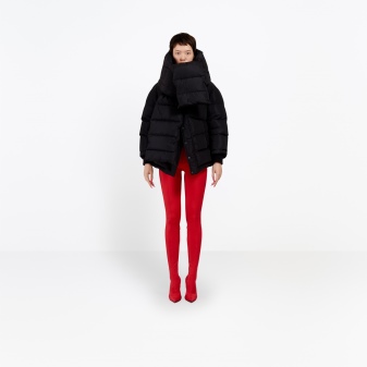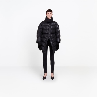 Balenciaga offers young ladies extra long down jackets or short puffer jackets. The hallmark of these things is a high collar that can be folded and adjust its length.