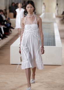 Modern young ladies will not be able to resist the high-quality and beautiful dresses from Balenciaga. They have unique silhouettes, an attractive play of light and fashionable draperies of fabrics.