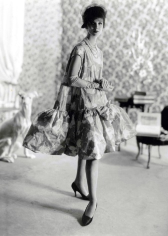 In 1960, the fashion house began to increasingly turn to heavy fabrics and cunning embroideries. The hallmark of the brand was a stand-up collar, emphasizing a beautiful and long neck, as well as short sleeves, bracelets.