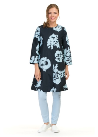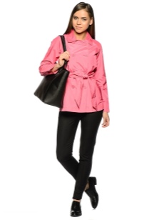 A bright cloak with patterns in the form of daisies will also help to add colors to the fashionable image. A loose model with flared sleeves fastens with buttons, two pockets are sewn on the sides. Such a raincoat will go well with both jeans and black dress pants.