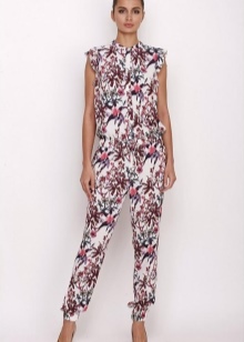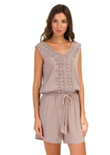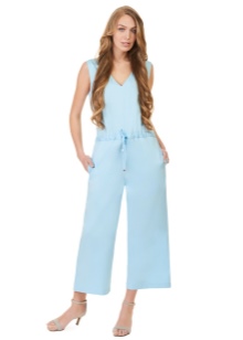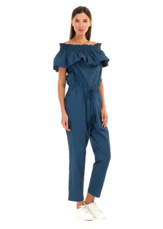 Do you want to feel comfortable and comfortable in any environment? Then a jumpsuit with wide legs is exactly what you need. The product is presented with a V-neck. Pockets are located on the sides. Landing is regulated by a drawstring with a puff. A fashionable part of the wardrobe will become simply indispensable on a sunny summer day. This season’s hit is a dusty jumpsuit with open shoulders and frills.