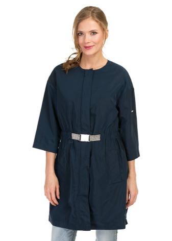 A novelty of your spring wardrobe can be a fashionable raincoat with a straight cut with straight armholes and wide sleeves. The raincoat is zipped and decorated with four pockets.