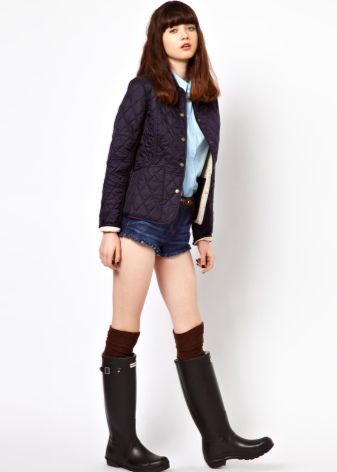 All elements of Barbour clothes are perfectly combined with each other. A practical waxed jacket will look perfect paired with bright rubber ankle boots.