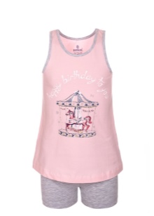 Bright and attractive models are made of cotton, modal and elastane. Such materials provide softness and durability to pajamas.