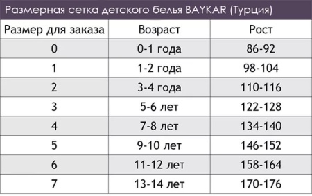 The brand provides a choice of consumers the widest range of high-quality underwear, pajamas, T-shirts, T-shirts, socks and tights. Choosing the perfect option is not difficult for an adult or a child of any age. Let's take a closer look at Baykar branded products.