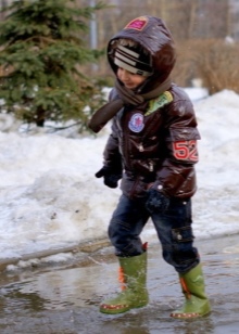 Moms note that the design of the models of rubber boots is designed so that the product becomes a universal wardrobe item. They fit under trousers, jeans, sweatpants. These shoes go well with a skirt and bright tights.