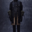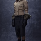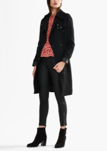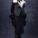 - Double-breasted leather coat with a two-tone pattern, high collars and lots of pockets.