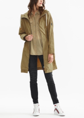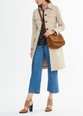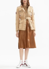 - Coat trench created with the participation of Liv Tyler.This model is made in a traditionally restrained English style. Material - cotton and linen in almost equal parts. Originality is given to it by a cut in the front and a slot on the back, button fasteners, two pockets and sleeves - a “bat”.