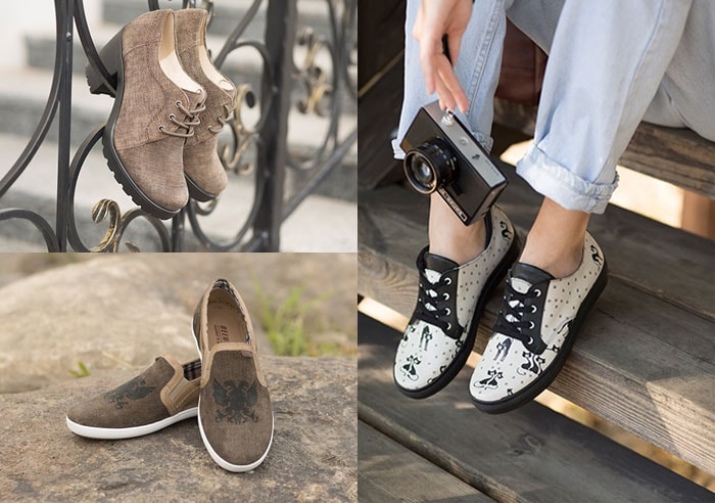 Their brand produces for lovers of comfortable shoes. Fashionable couples can be equipped with a thicker or thinner sole, a small heel, laces, perforations or jumpers.