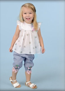 - Children's clothing for babies from 0 to 3 years. The collection includes T-shirts, sweatshirts, dresses, trousers, sets, jumpers and sundresses.The range of products for children includes several collections, designed in a pirate, marine and floral style. Particular attention is paid to newborn babies of small weight. The collection includes sets for the newborn, as well as sliders and blouses for height 42-50 cm.