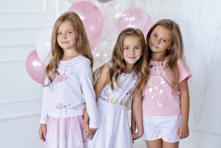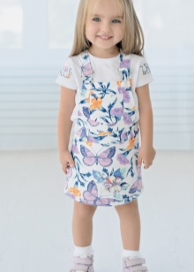 Dresses, T-shirts, sliders, T-shirts are presented in a wide range of colors. Here are delicate, pastel shades and bright, saturated colors. The prints used motifs on the theme of animated films, toys, floral patterns, animals, fantasy drawings, inscriptions.