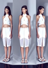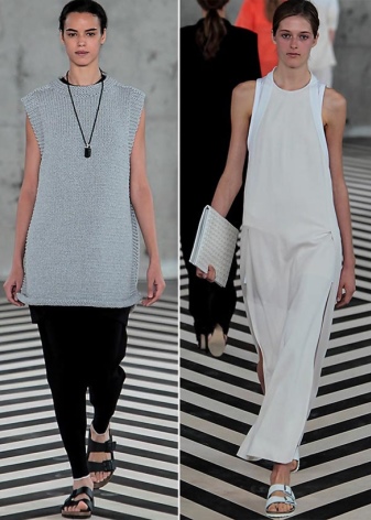 It seems that rough sandals and skirts are unlikely to meet in one bow, but in practice it's different. They look great with a knitted pencil skirt, with a fluffy midi length skirt and a flying fabric skirt.