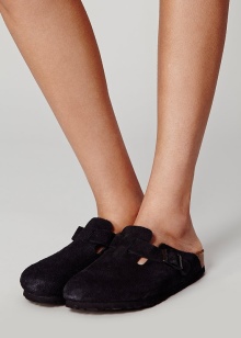 Birkenstock stock blogs are represented by two models - Boston and Amsterdam. These are flip flops closed in front, which also resemble clogs. Amsterdam is a concise model without any additional elements, and Boston is complemented by a signature strap.