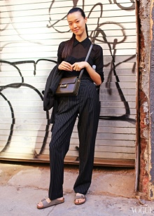 These wide cropped trousers are still popular, so they can be safely combined with Birkenstock sandals. It turns out a very harmonious relaxed look - nothing restricts the movements, the legs feel as comfortable as possible, and you look very stylish.