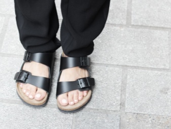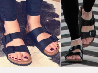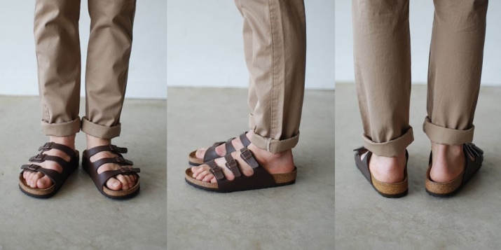 Birkenstock sandals and slippers have a recognizable design. Most often, these are 1, 2 or 3 straps located across. Thanks to the presence of buckles, the completeness of the shoe can be adjusted.