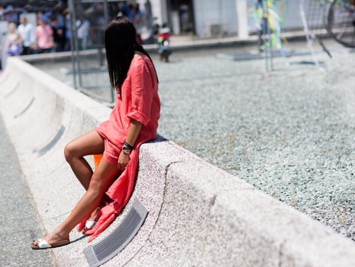 Oddly enough, these orthopedic flip flops seem to be created to wear them with a dress in a linen style. It turns out a spectacular game in contrasts - a feminine sundress on thin straps and rough voluminous sandals.