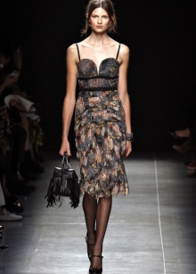 Small, neat, elegant, they emphasized the curves of the figure, delicately wrapping the body. The collection used floral prints in caramel, beige, dusty rain colors, multilayer floral overlays, voluminous butterfly sleeves, perforated inserts, shiny ribbons, stones, beads, lace, rhinestones. She became a hit, leaving no one indifferent.