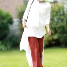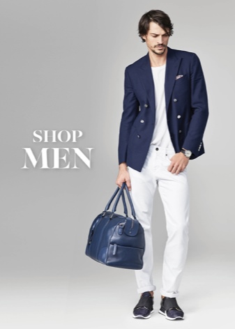 A freer look can be created from cotton trousers, a light sweater over a shirt and moccasins, combined with a belt and a leather shoulder bag - all accessories from Bruno Magli. In this form, you can safely go for an evening walk, meet friends or use it every day