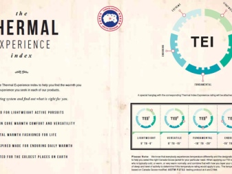 Labeling of the thermal characteristics of clothing is presented in the Thermal Experience Index (TEI) system - in five ranges. The temperature range that clothes correspond to is from +50 to -300 C.