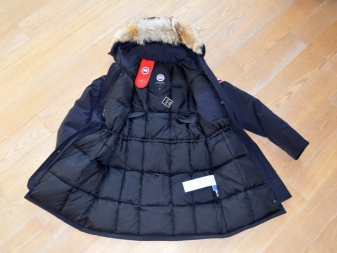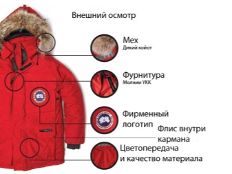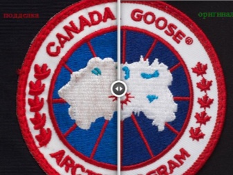 - Emblem. On the original product, the Canada Goose logo is sewn on the sleeve - with neat uniform stitches and with the obligatory image of maple leaves.