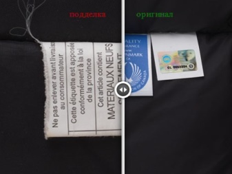- The inside of the product. Obligatory presence of the company logo on the sewn-in triangular cut, hinge with an indication of the product model, side sewn-in tags with a hologram of the company and recommendations for caring for the product, as well as the composition of the filler.
