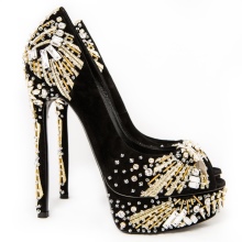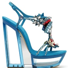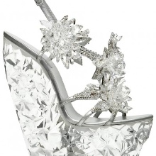 At one time, Italian fashion designer shoes decorated with leather ruffles provoked an active discussion in fashion circles - you must agree, a very bold and unexpected decision. The use of Swarowski crystals as a material has already been mentioned above. If competitors usually use them only as decoration, then the legendary “ice” shoes have a top made almost entirely of these crystals!