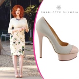 Many celebrities often surprise everyone on the red carpet with unusual combinations of elegant evening dresses with shoes with colored geometric or leopard patterns. That is how Charlotte imagined the fusion of the glamorous fashion of the 40s and modern trends.